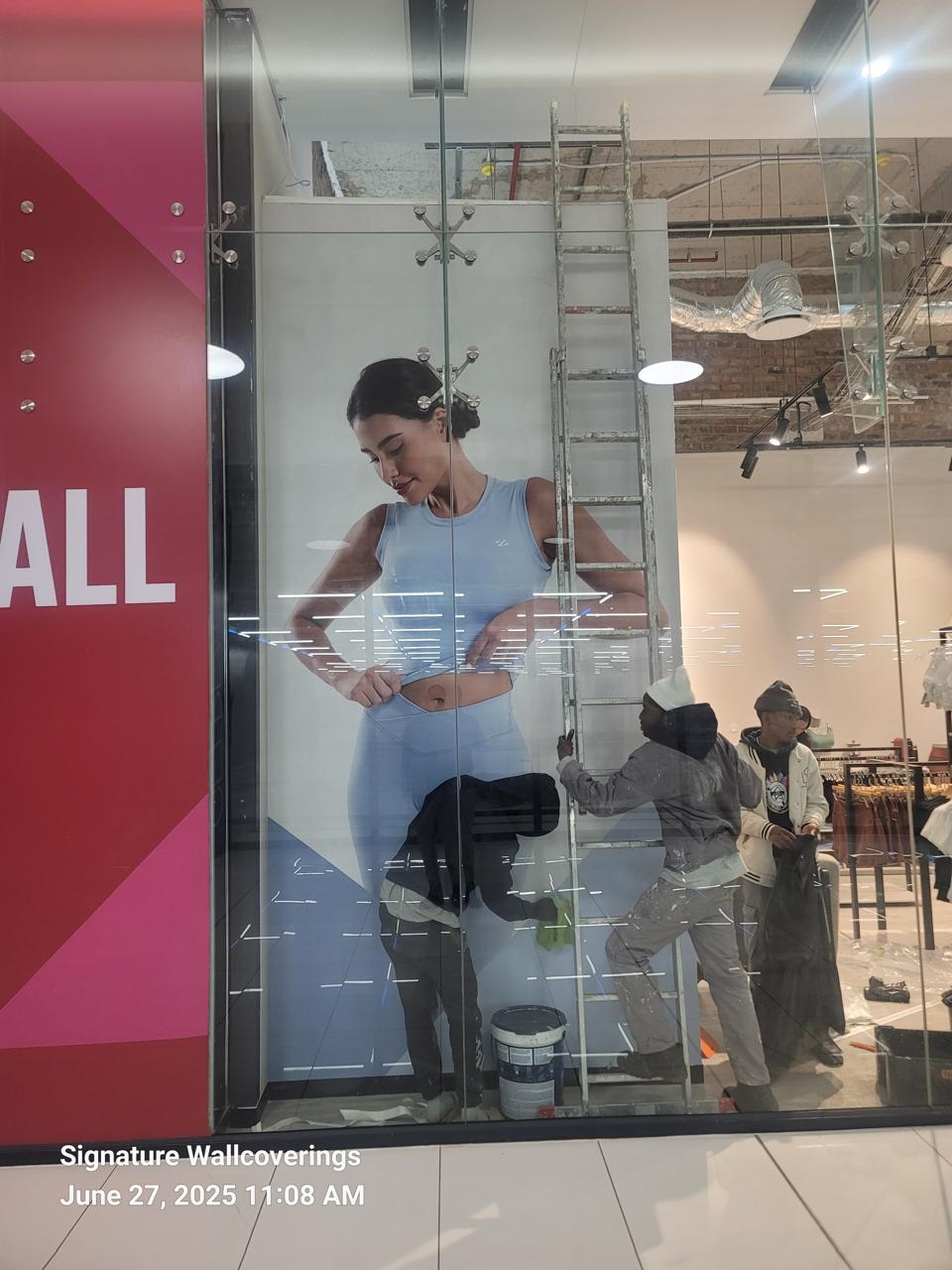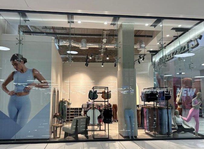 The store layout follows a carefully planned circulation route that guides shoppers from statement window displays through curated collections to an immersive fitting area. Large-format lifestyle graphics and integrated digital screens reinforce the brand narrative at every touchpoint.